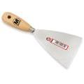 Il manico in legno, ergonomico e dal design curato, assicura una presa comoda e stabile anche durante un uso continuativo, offrendo una maggiore padronanza nell’esecuzione di lavori di stuccatura, rasatura e pulizia di superfici.