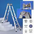 Scala telescopica in alluminio 7 7 gradini progettata per offrire massima versatilità e sicurezza nel lavoro in quota. Ideale sia per professionisti del settore edile che per operatori di manutenzione e fai-da-te, questa scala garantisce la possibilità di utilizzo in condizioni diverse: doppia, zoppa e appoggiata al muro. La struttura pieghevole e telescopica agevola il trasporto e l'immagazzinamento, risparmiando spazio prezioso.